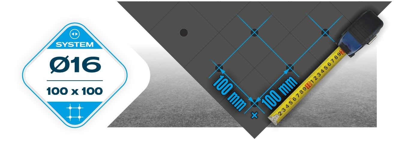 System otworów Ø16 zastosujesz do lżejszych i bardziej precyzyjnych prac oraz mniejszych konstrukcji. Jest najczęściej wybierany jako baza zrobotyzowanych stanowisk spawalniczych.