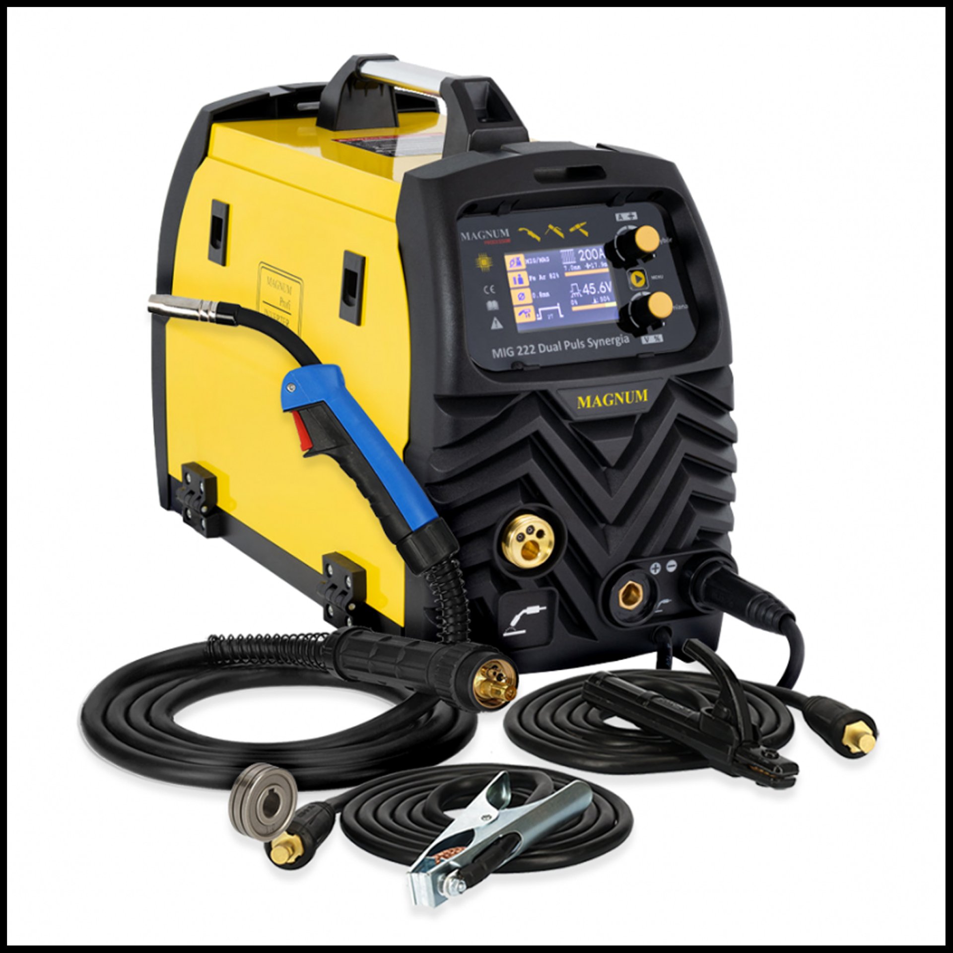- Spool Gun: opcjonalnie uchwyt spawalniczy z wbudowanym podajnikiem drutu.