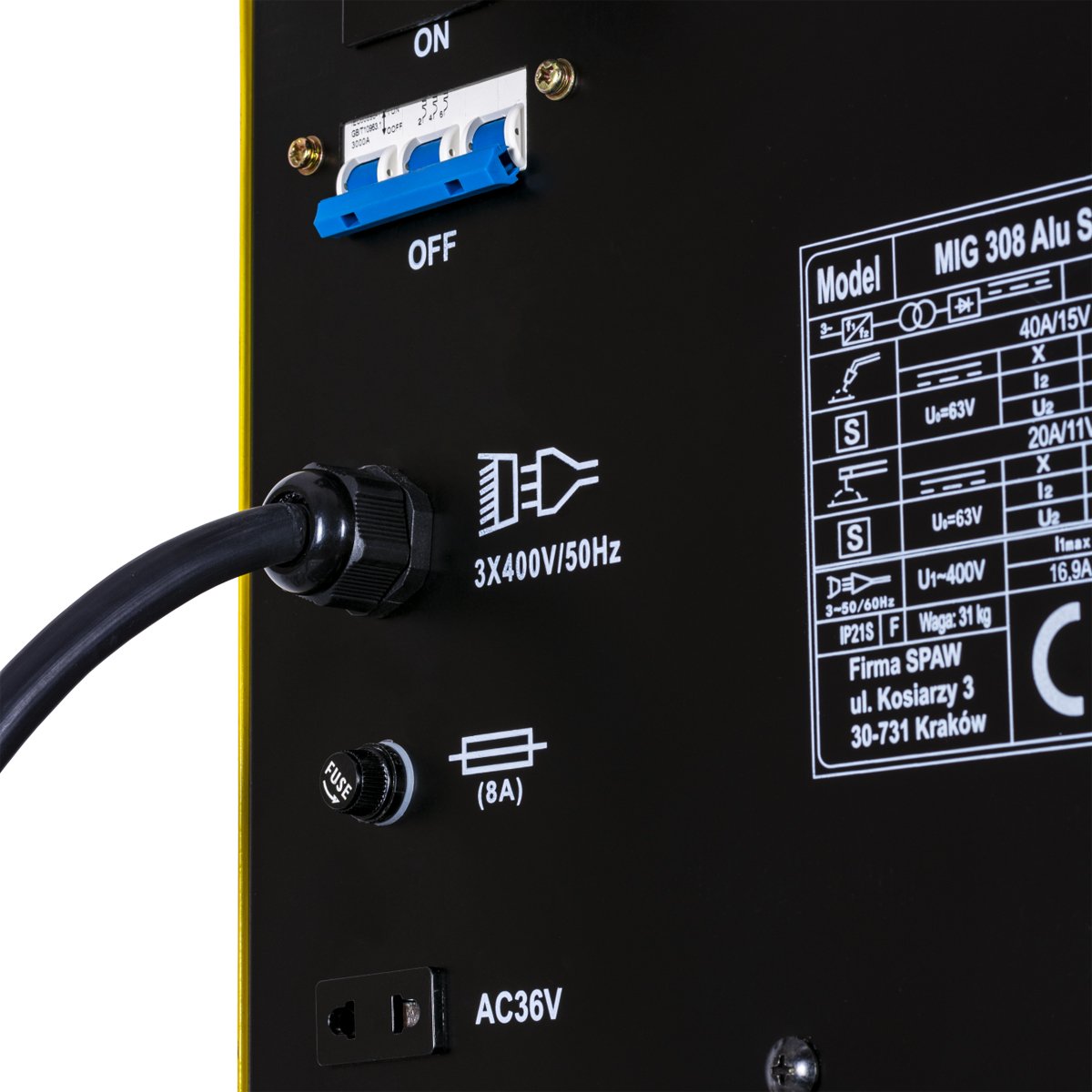 MIG/MAG 308 Alu Synergia to kompaktowa i nowoczesna zasilana z sieci trójfazowej spawarka migomat ze sterowaniem synergicznym lub manualnym o maksymalnym prądzie spawania 300 A w cyklu wynoszącym 60%.j. Służy do spawania metodą MIG/MAG, MMA oraz TIG LIFT stali, stali nierdzewnych, aluminium i jego stopów oraz umożliwia lutospawanie blach ocynkowanych.
